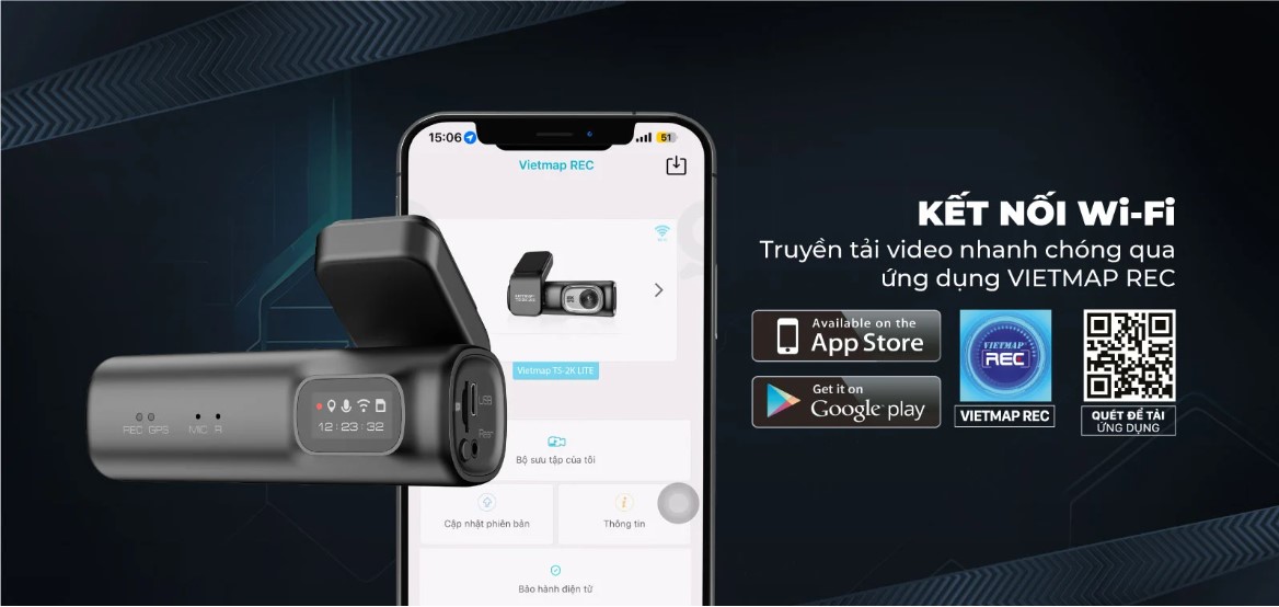 Thông qua ứng dụng chuyên dụng VIETMAP REC, người dùng có thể xem lại, lưu trữ và chia sẻ các video ghi hình một cách dễ dàng và tiện lợi. Ứng dụng này tương thích với cả hai hệ điều hành phổ biến là Android và iOS.