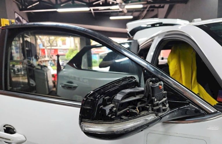 Tháo Gương Cũ: Tháo gương chiếu hậu cũ một cách cẩn thận, bảo vệ các bộ phận điện và khung gương.