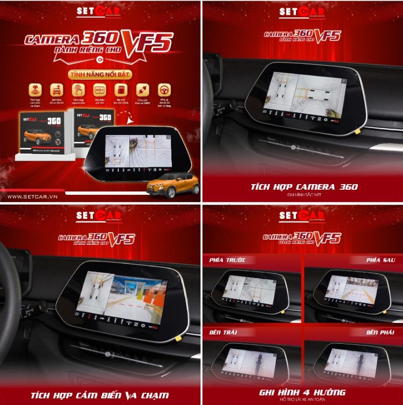 Sản Phẩm Chất Lượng Cao: Chúng tôi chuyên cung cấp và lắp đặt các sản phẩm chính hãng, tiêu biểu là camera 360 độ SETCAR cho VF5. Bộ sản phẩm này được thiết kế cắm giắc zin, tích hợp các tính năng nâng cao như hỗ trợ phanh tái sinh và điều khiển qua vô lăng.